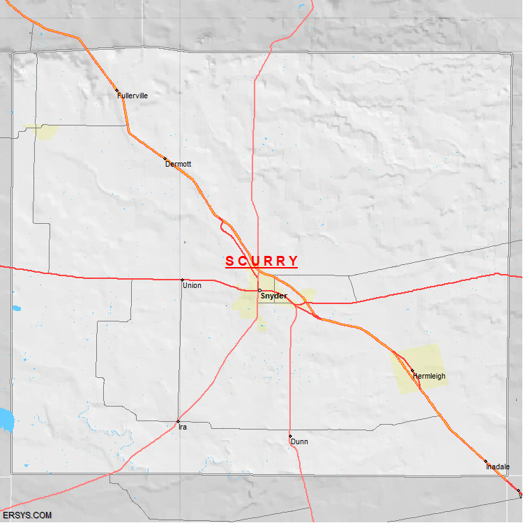 The estimated population of Scurry County is 16,317 with 5,702 households. These households are spread across 3 unique municipalties (not all shown).