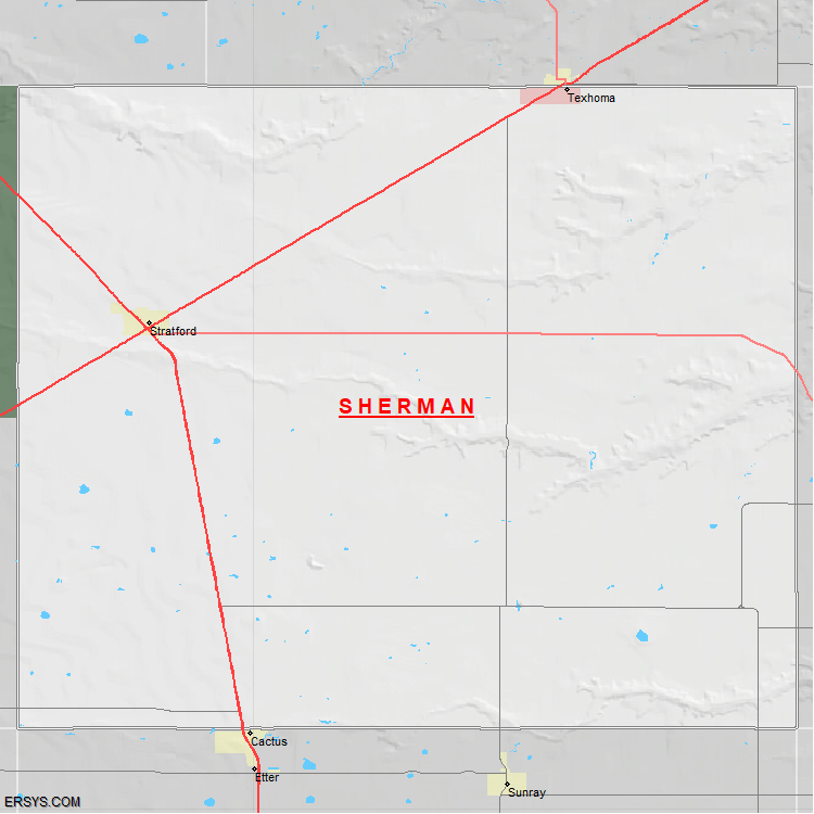 Sherman County, TX (shown in white) has 922.86 mi² of land area and 0.16 mi² of water resources. The county is bordered by: