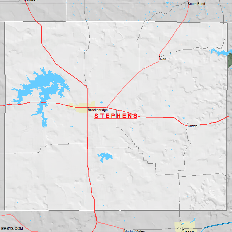 Stephens County, TX (shown in white) has 896.72 mi² of land area and 24.77 mi² of water resources. The county is bordered by: