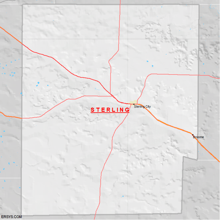 Sterling County, TX (shown in white) has 923.45 mi² of land area and 0.06 mi² of water resources. The county is bordered by: