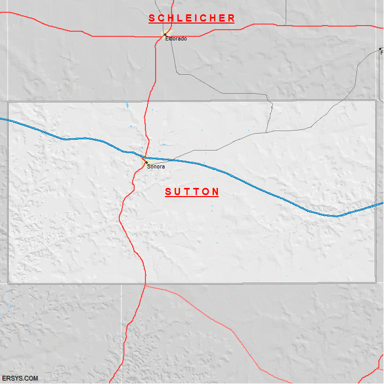 Sutton County, TX (shown in white) has 1,453.94 mi² of land area and 0.49 mi² of water resources. The county is bordered by: