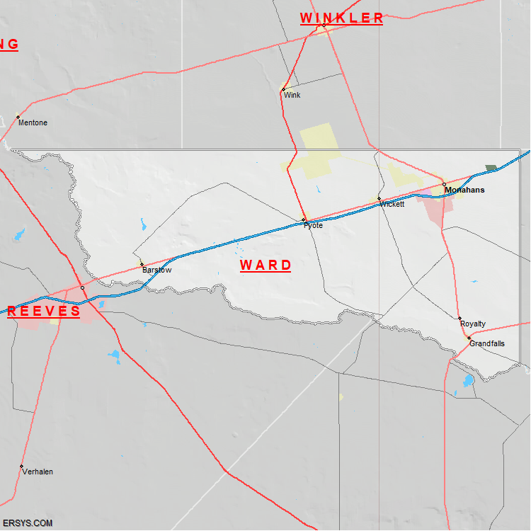 Ward County, TX (shown in white) has 835.6 mi² of land area and 0.24 mi² of water resources. The county is bordered by: