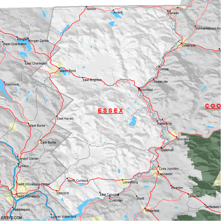 The estimated population of Essex County is 5,955 with 2,713 households. These households are spread across 6 unique municipalties (not all shown).