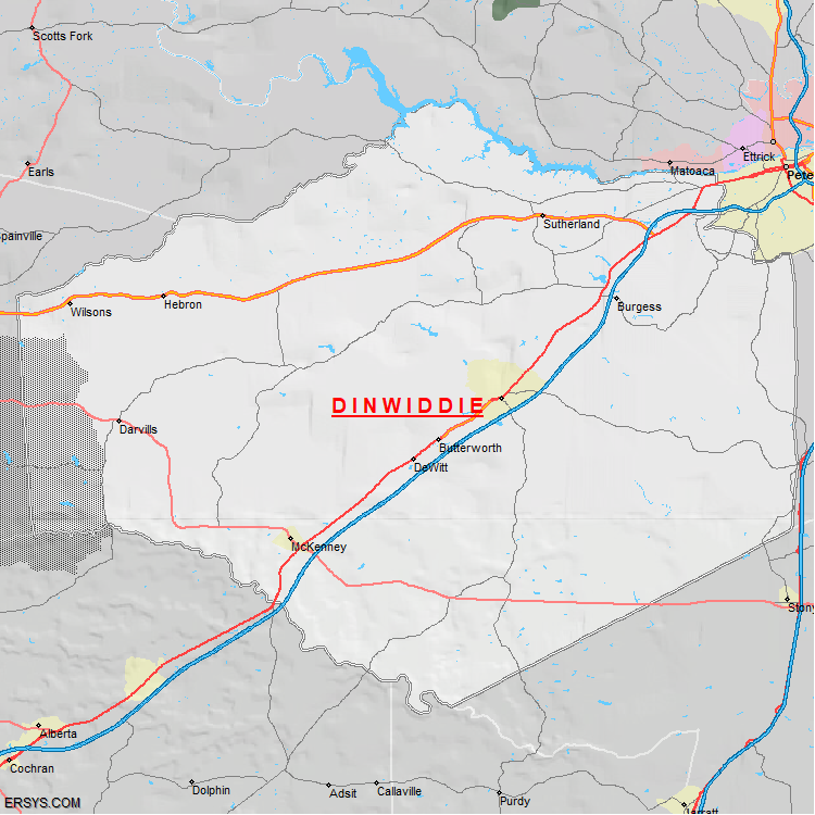 The estimated population of Dinwiddie County is 28,937 with 11,328 households. These households are spread across 2 unique municipalties (not all shown).
