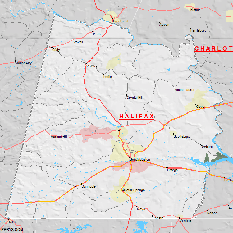 The estimated population of Halifax County is 34,457 with 14,895 households. These households are spread across 9 unique municipalties (not all shown).