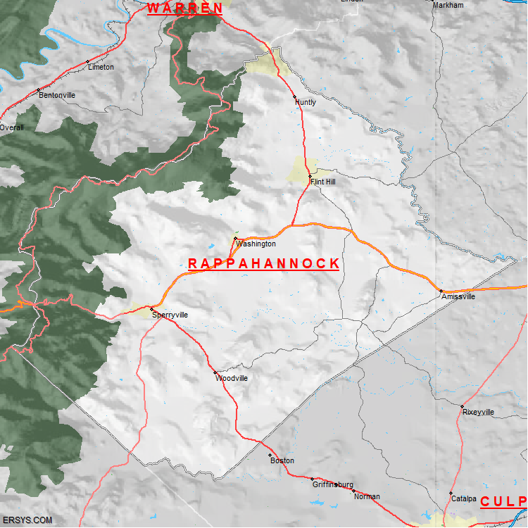 The estimated population of Rappahannock County is 7,528 with 3,275 households. These households are spread across 4 unique municipalties (not all shown).
