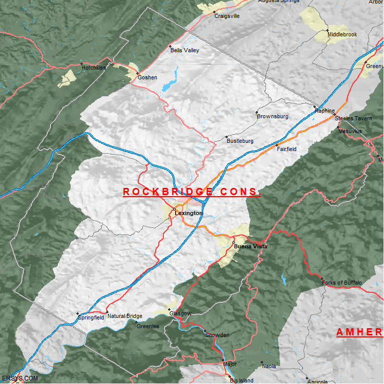 The estimated population of Rockbridge County is 22,689 with 9,621 households. These households are spread across 4 unique municipalties (not all shown).