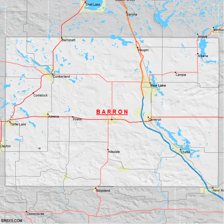 The estimated population of Barron County is 47,634 with 20,048 households. These households are spread across 11 unique municipalties (not all shown).