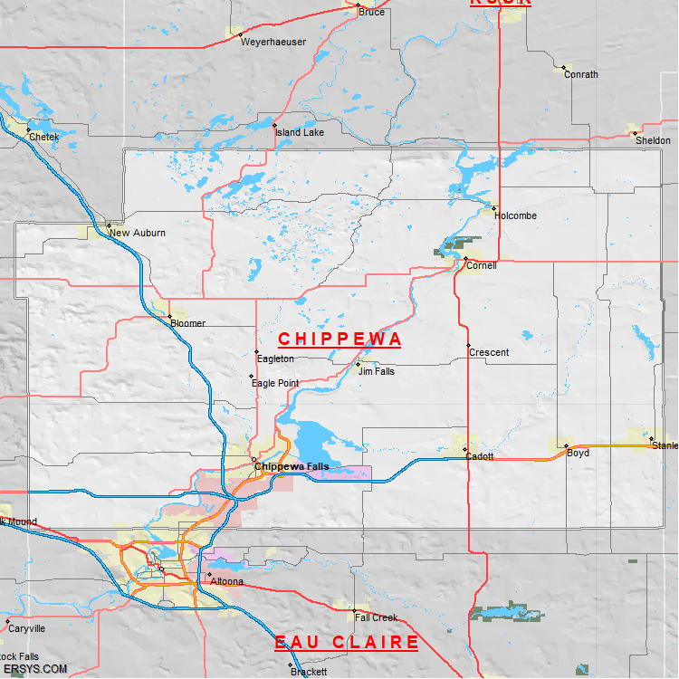 The estimated population of Chippewa County is 68,107 with 27,048 households. These households are spread across 11 unique municipalties (not all shown).
