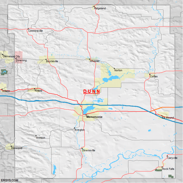 The estimated population of Dunn County is 46,463 with 17,817 households. These households are spread across 11 unique municipalties (not all shown).