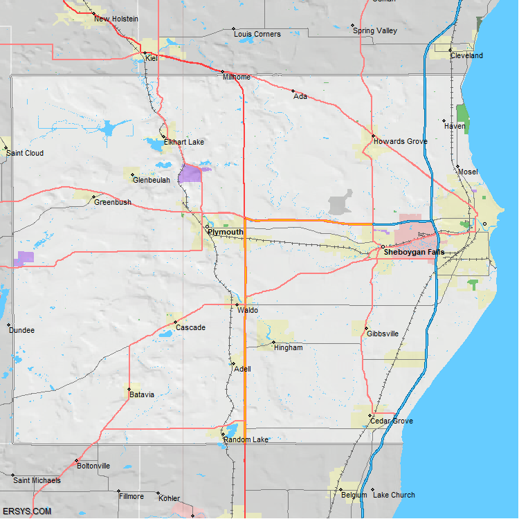 Sheboygan County, WI (shown in white) has 511.52 mi² of land area and 759.72 mi² of water resources. The county is bordered by: