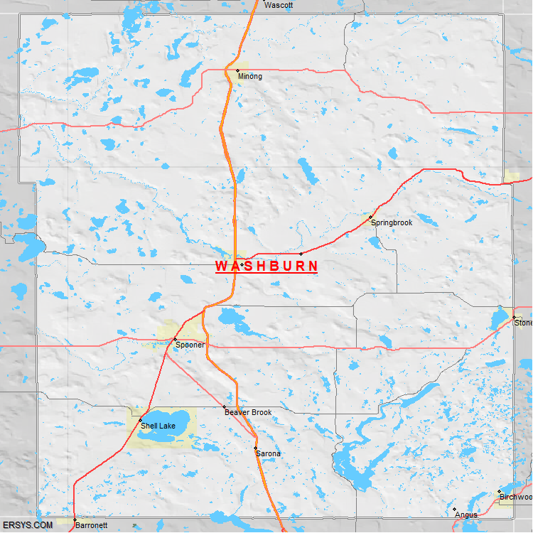 The estimated population of Washburn County is 17,107 with 7,707 households. These households are spread across 7 unique municipalties (not all shown).