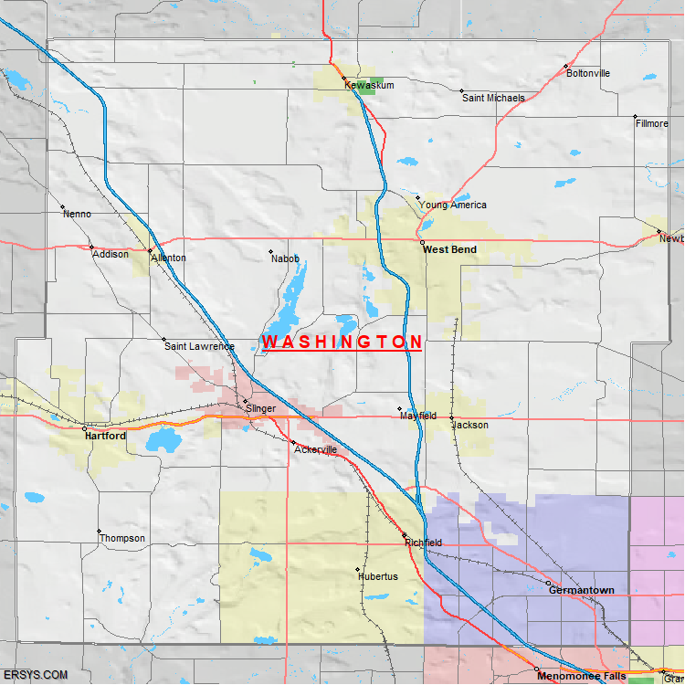 Washington County, WI (shown in white) has 430.64 mi² of land area and 5.02 mi² of water resources. The county is bordered by: